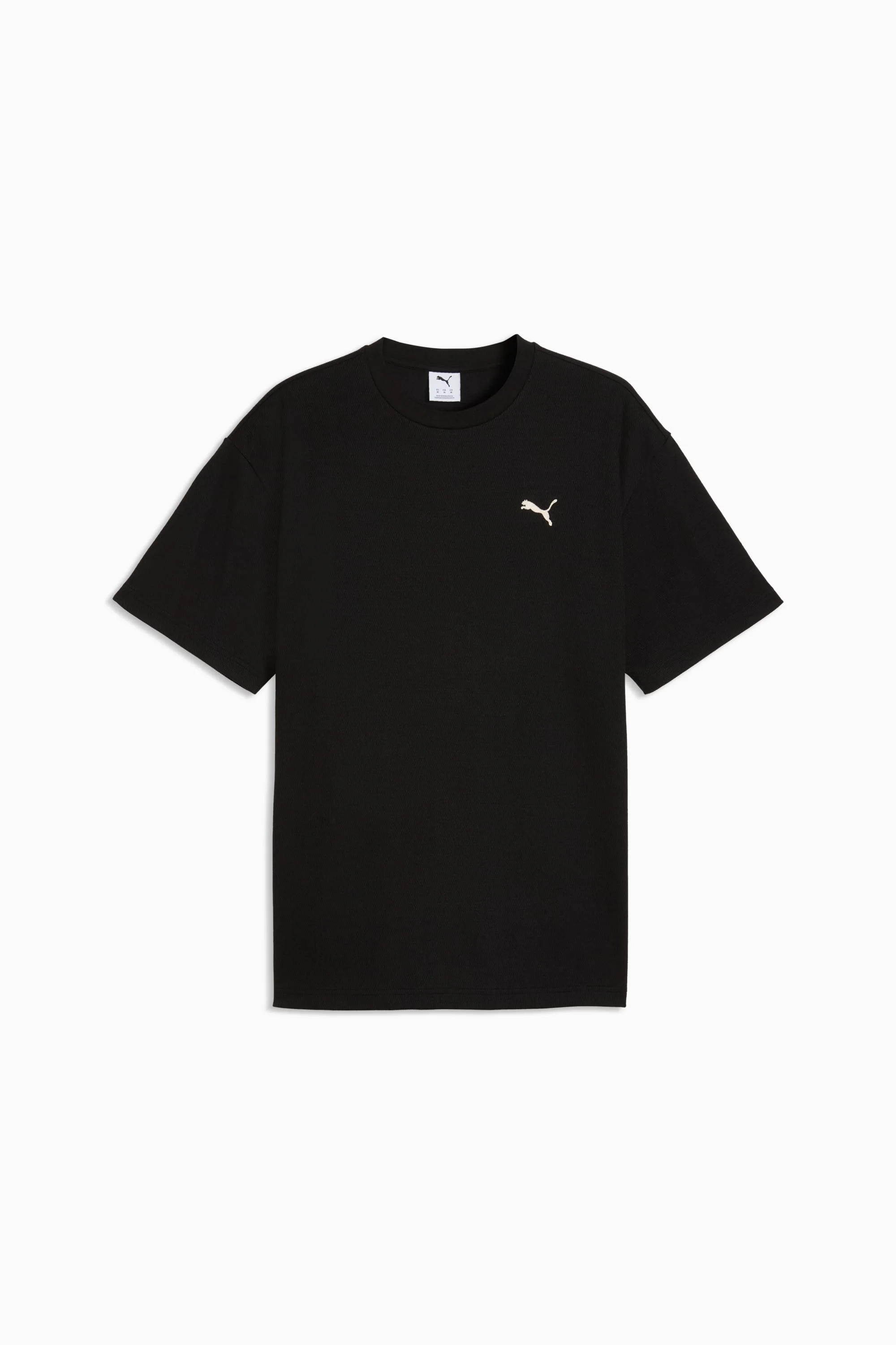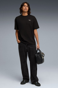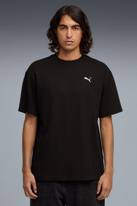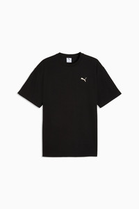 PRODUCT STORY Comfortable feel, effortless style—PUMA Essentials Elevated takes everyday comfort up a notch. With sport-inspired details and a perfect fit, these pieces bring a refined touch to your go-to essentials. Casual yet always on point—because everyday style should feel this good. FEATURES & BENEFITS - Made with at least 30% recycled materials. DETAILS - Style: 692018_01 - Color: PUMA Black - Fit: Relaxed - Main material type: Mesh - Neck: Crew neck - Short sleeves - Length: Regular - PUMA Cat logo embroidery MATERIAL INFORMATION - Lining: 60% cotton, 40% polyester - Shell: 60% cotton, 40% polyester - Rib: 58% cotton, 39% polyester, 3% elastane