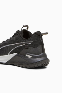 PRODUCT STORY The lightweight running shoe that will do it all, no matter the terrain – the Fast-Trac NITRO™ 2 has dropped. It delivers a smooth ride and ground-feel on surfaces including including loose trails and gravel, thanks to a full-length nitrogen-infused top layer embedded in the PROFOAMLITE midsole. Add to that the durable PUMAGRIP-ATR outsole and integrated eyestays for a snug fit, along with details at the toe that help drain humidity and protect from debris – and you're golden with this ground-breaking shoe made for all runners in all four seasons. FEATURES & BENEFITS - NITRO™: Enclosed nitrogen-infused foam designed to provide responsiveness and cushioning in a lightweight package - PROFOAMLITE: Extremely lightweight EVA designed to cushion your landing and propel each step - PUMAGRIP ATR: Trail-ready performance rubber compound designed for traction on ice, mud, and unstable surfaces DETAILS - Style: 307684_01 - Color: PUMA Black-Dark Coal - Ripstop mesh upper - Forefoot drainage ports and debris protectors - Cushioning level: Medium - PUMA Formstrip on the lateral side - Heel-to-toe drop: 6mm - Shoe pronation: Neutral MATERIAL INFORMATION - Midsole: 100% Synthetic - Sockliner: 100% Textile - Outsole: 100% Rubber - Upper: 51% Textile, 49% Synthetic - Lining: 100% Textile