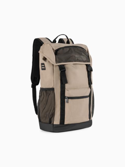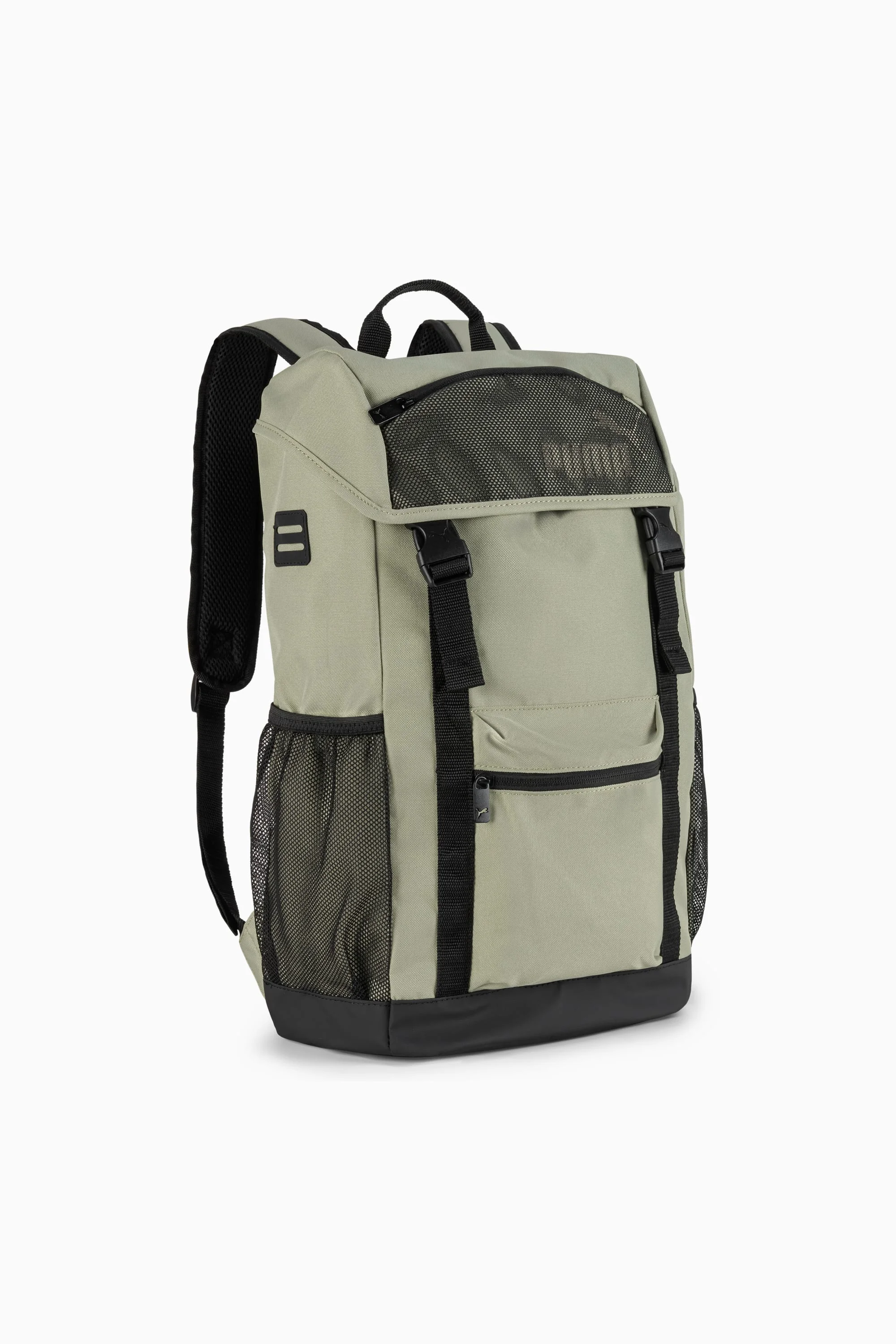 PRODUCT STORY Simple. Stylish. Practical. The flaptop backback boasts a wide storage compartment with an extra large opening and additional pockets at the front and sides. Now you can bring everything everywhere. DETAILS - Style: 858969_07 - Color: OLIVE/BLACK - Buckles securing flap top - Drawstring opening for adjustable opening into main compartment - Zipper pocket at front - Adjustable shoulder straps - Dual mesh pockets at sides - PUMA Logo at flap top