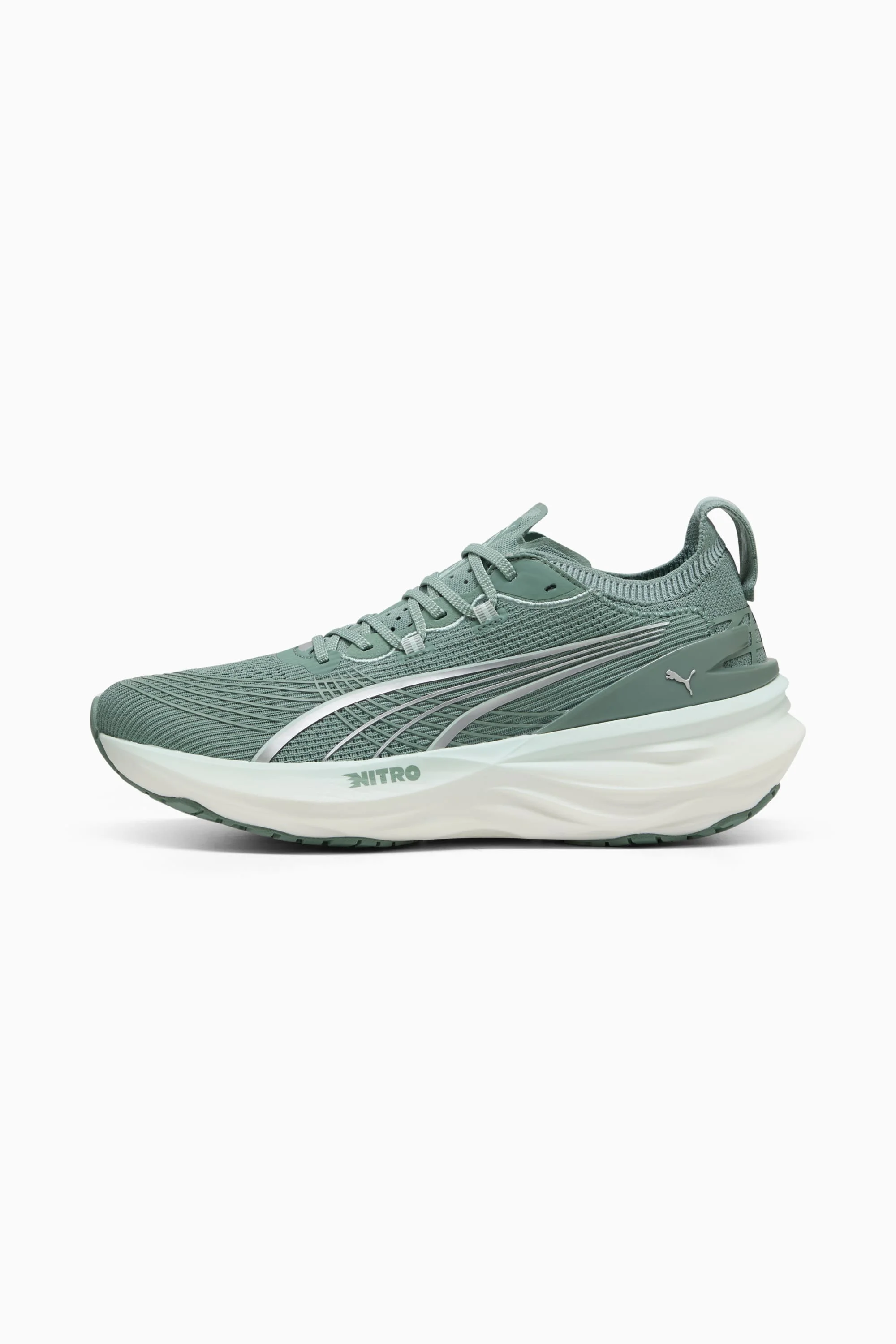 PRODUCT STORY Discover a new era of support, guidance, and comfort for all runners with the PUMA ForeverRun 2. This new and improved version provides unmatched stability thanks to a wider midsole, upgraded dual-density NITROFOAM™ cushioning, and an improved fit with a rolled collar and engineered knit upper. Made for your everyday running and training needs, ForeverRun 2 is a shoe that will make you feel like you can run forever. FEATURES & BENEFITS - NITROFOAM™: Advanced nitrogen-infused foam designed to provide superior responsiveness and cushioning in a lightweight package - PUMAGRIP: Durable performance rubber compound designed for all-surface traction - The upper of the shoes is made with at least 30% recycled materials. DETAILS - Style: 310109_06 - Color: Green Moon-Peaceful Blue - Regular width - Textile upper - Lace closure - Heel-to-toe drop: 10 mm - Recommended for: overpronators - PUMA branding details MATERIAL INFORMATION - Midsole: 100% Synthetic - Sockliner: 100% Textile - Outsole: 100% Rubber - Upper: 79% Textile, 21% Synthetic - Lining: 100% Textile