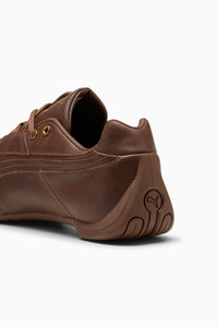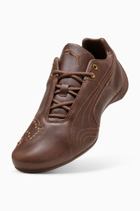 PRODUCT STORY Taking style cues from motorsport, the Future Cat showcases our heritage racing DNA. This version of the sneakers comes with a PUMA Cat logo with metal studs, so you feel sharp every time you step out. DETAILS - Style: 405962_01 - Color: Espresso Brown-Gold - Width: Regular - Toe type: Rounded - Closure: Laces - Heel type: Flat - PUMA branding details MATERIAL INFORMATION - Sockliner: 100% Synthetic - Outsole: 100% Rubber - Upper: 99.49% Leather - cow, 0.51% Synthetic - Lining: 100% Synthetic