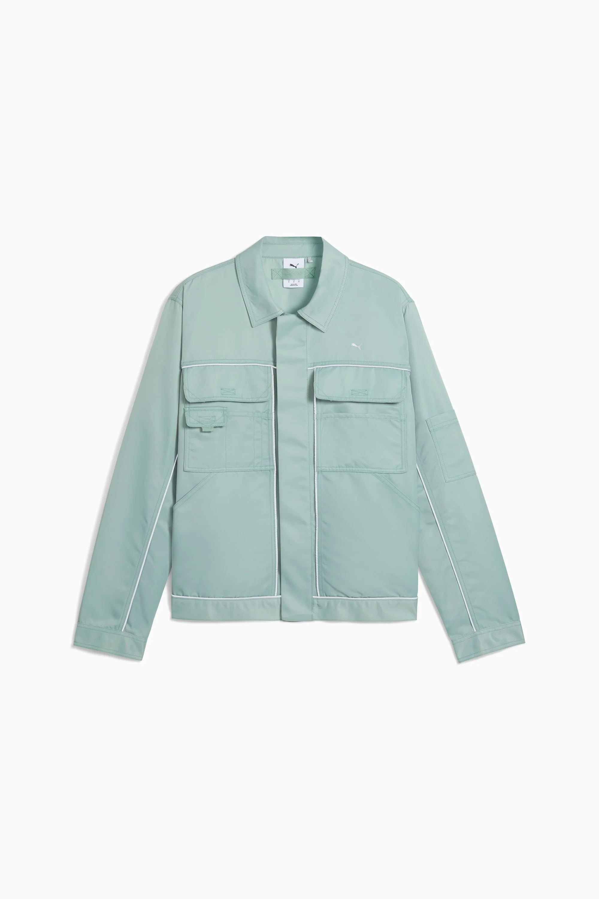 PRODUCT STORY Limited edition, limitless impact. This season's Special Items introduce a new capsule collection of functional active gear that's never been done before—and might never be done again. Among the unique styles are a knitted sweater vest with bold graphics, a futuristic hourglass jacket, and eclectic all-over print pants. DETAILS - Style: 632497_37 - Color: Light Moss - Fit: Relaxed - Main material: Twill weave - Neck: Collar - Long sleeves, adjustable cuffs with buttons - Fastener: Hidden button placket - Length: Standard jacket - Pockets: Hook-and-loop pockets on the chest, small pencil pocket on the chest, side pockets, sleeve pocket - Reflective design details MATERIAL INFORMATION - Shell: 100% nylon - Pocket Bag: 100% nylon