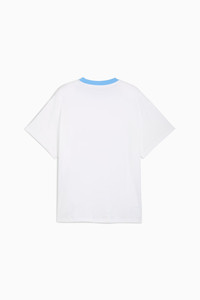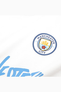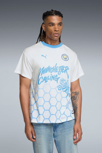 PRODUCT STORY Take your style game to the next level with the PUMA HOOPS x Manchester City basketball tee. This standout piece merges bold basketball vibes with the iconic colours and crest of Manchester City. Made from hghiquality fabric, it's designed for all-day comfort whether you're shooting hoops or cheering for your team. FEATURES & BENEFITS - Made with at least 20% recycled cotton DETAILS - Style: 631695_01 - Color: PUMA White - Oversized fit - Single jersey - Regular length - Crew neck - Short sleeves - Manchester City branding details - PUMA HOOPS branding details MATERIAL INFORMATION - Shell: 100% cotton - Rib: 71% cotton, 29% polyester