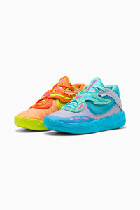 PRODUCT STORY Melo’s favorite animated duo returns for a new drop of the wildest collab in the multiverse: PUMA x RICK AND MORTY. The MB.05 gets an interdimensional upgrade with a mismatched design that brings Rick and Morty chaotic genius to life – Rick in charged-up aqua and peppermint, Morty in vibrant orange and yellow. This edition of Melo’s boldest signature shoe yet is ready to turn heads across the galaxy. FEATURES & BENEFITS - NITROFOAM™ ELITE: Innovative nitrogen-infused foam technology that offers exceptional energy return, unbeatable speed, and greater long-distance comfort for race-day DETAILS - Style: 312130_01 - Color: Rickie Orange-Electric Peppermint - Fit: Regular - Rounded toe - Fastener: Laces - Heel type: Flat - PUMA x RICK AND MORTY co-branding details MATERIAL INFORMATION - Midsole: 100% Synthetic - Sockliner: 100% Textile - Outsole: 100% Rubber - Upper: 72% Textile, 28% Synthetic - Lining: 100% Textile