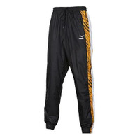 PUMA Leopard print Splicing Running Sports Woven Long Pants Black 579511-21