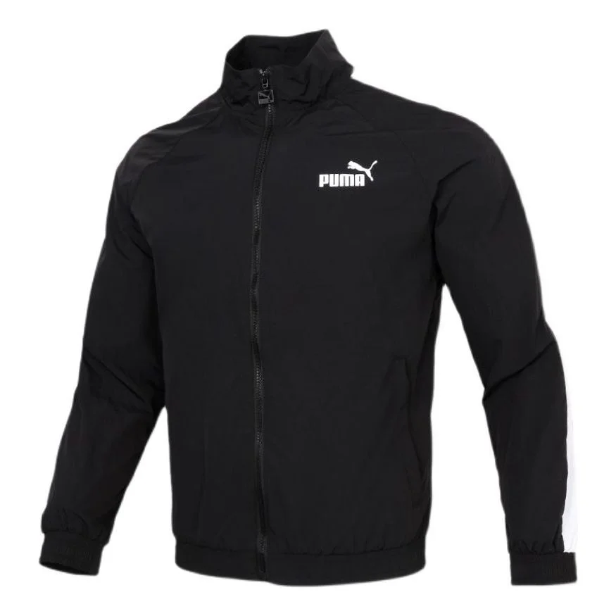 PUMA Logo Sports Windproof Stand Collar Woven Jacket Black 532559-01