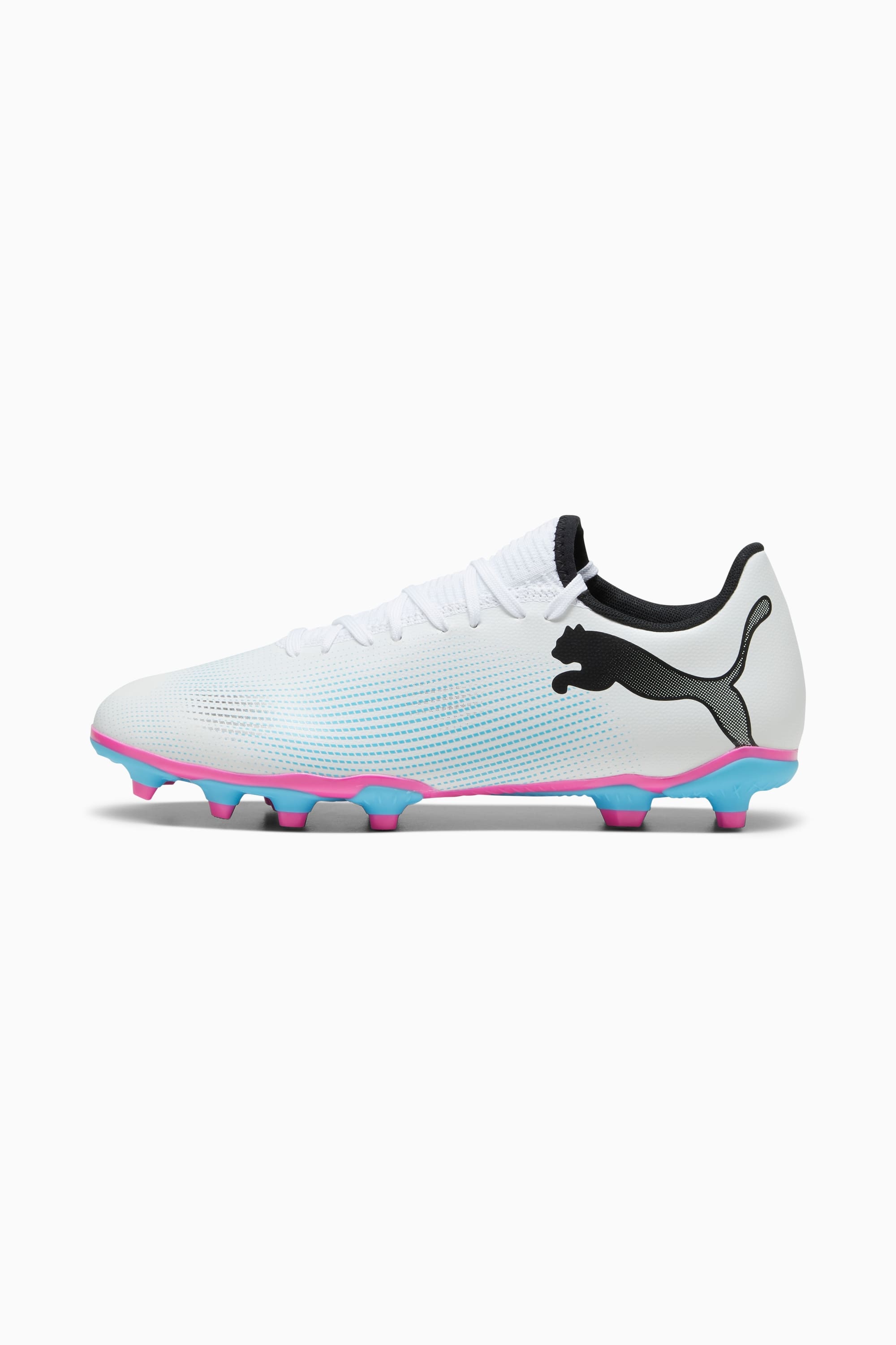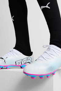 PRODUCT STORY Playmakers, lock into the FUTURE. The soft upper combines a lightweight yet durable synthetic and a stretchy collar for a comfortable and supportive fit, so you can create without constraints throughout the 90 minutes. Dynamic Motion System provides traction and agility for quick cuts and changes of pace. When you wear the FUTURE, you are the FUTURE. Go create. FEATURES & BENEFITS - Recycled content: The upper of this shoe is made from at least 30% recycled material DETAILS - Style: 107723_01 - Color: PUMA White-PUMA Black-Poison Pink - Soft upper combines a lightweight yet durable synthetic with a stretch collar for a comfortable fit - Texturized print details at key contact zones for enhanced ball grip - Dynamic Motion System with an advanced stud configuration is designed for the perfect balance of support, traction, and agility - Suitable for use on both firm natural surfaces and artificial grass (4G) - Regular to wide fit - FG/AG: Firm Ground/Artificial Ground MATERIAL INFORMATION - Sockliner: 100% Textile - Outsole: 100% Synthetic - Upper: 100% Synthetic - Lining: 100% Textile
