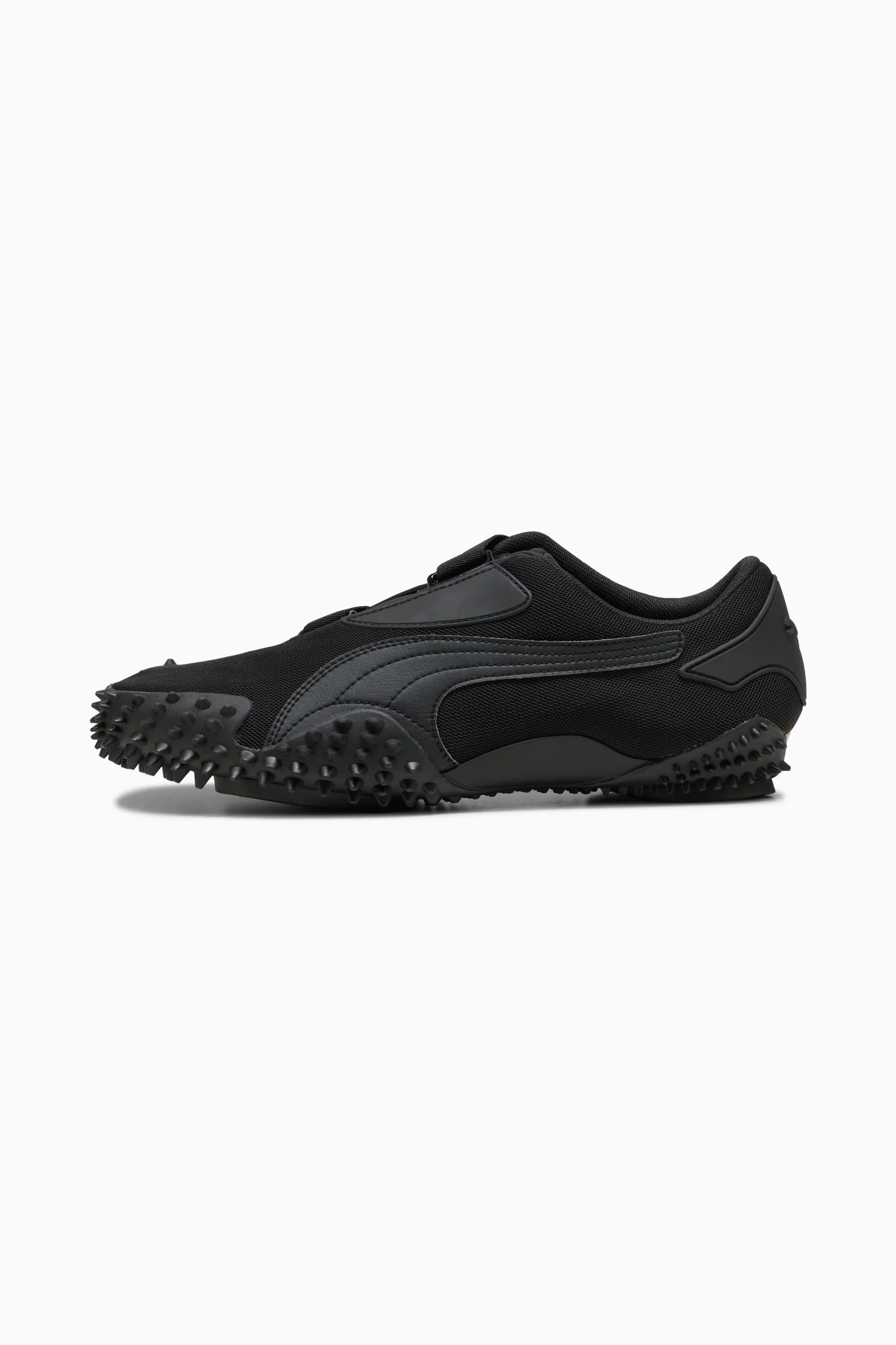 PRODUCT STORY For over two decades, Mostro has been worn by those who defy conventions and eschew the norm. Taking its name from the Italian word for monster, Mostro is a hybrid creation with a sleek, sculptural shape and spiked sole. This bold new drop is a statement piece, the final touch to pull the look together, ready for wherever the night leads. FEATURES & BENEFITS - Vegan certified product. - The upper of the shoes is made with at least 20% recycled materials. DETAILS - Style: 403206_04 - Color: PUMA Black-PUMA Black - Regular fit - Rounded toe - Elasticated hook-and-loop closure system - Lining: Textile - Rubber outsole wraps the upper - Rubber spikes on the sole as design detail MATERIAL INFORMATION - Sockliner: 100% Textile - Outsole: 83.70% Rubber, 16.30% Synthetic - Upper: 73.08% Textile, 26.92% Synthetic - Lining: 100% Textile