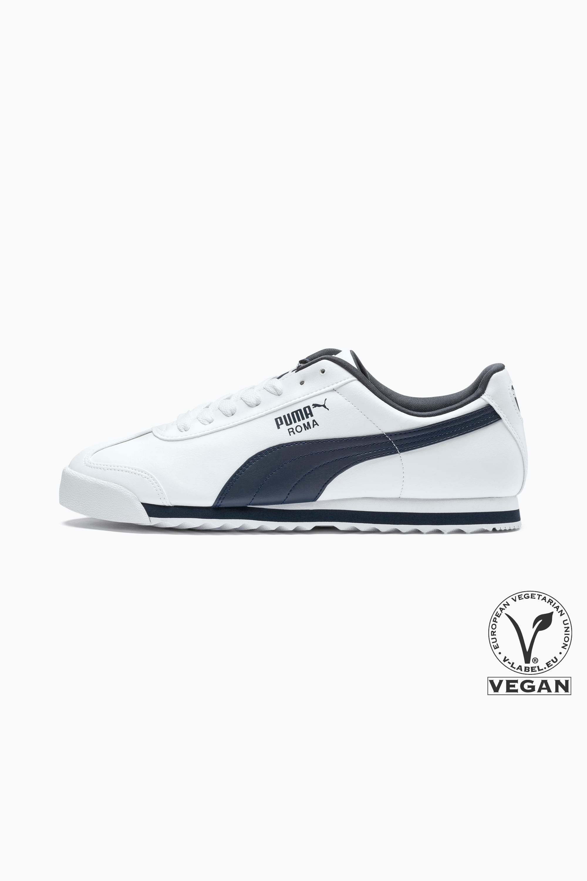 PRODUCT STORY Step up your sneaker game with the PUMA Roma Basic sneakers. With a classic silhouette and iconic PUMA branding, these sneakers are a must-have for any sneaker enthusiast. The cushioned midsole provides all-day comfort, while the durable rubber outsole offers traction and stability. Whether you're hitting the streets or heading to the gym, the PUMA Roma Basic sneakers will keep you stylish and comfortable every step of the way. Elevate your sneaker collection with these timeless kicks from PUMA. DETAILS - Style: 353572_12 - Color: white-new navy - Classic Roma silhouette - Synthetic leather upper - Full lace closure - Padded tongue and collar - EVA midsole for lightweight cushioning - Rubber outsole with special tread pattern - Contrast PUMA Formstrip overlay at side - PUMA Roma callout at lateral side - PUMA Archive label at tongue MATERIAL INFORMATION - Sockliner: 100% Textile - Outsole: 100% Rubber - Upper: 97.63% Synthetic, 2.37% Textile - Lining: 100% Textile