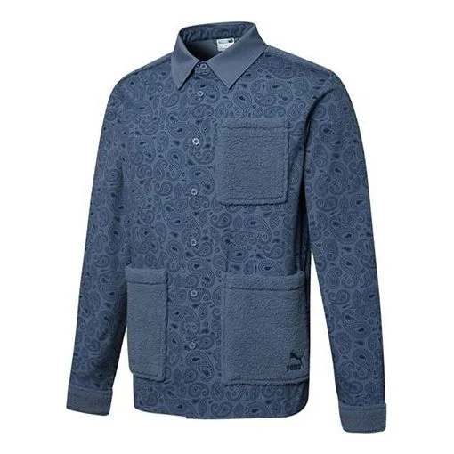 PUMA Paisley Woven Shirt cashew Pattern Multiple Pockets Jacket Blue 534978-64