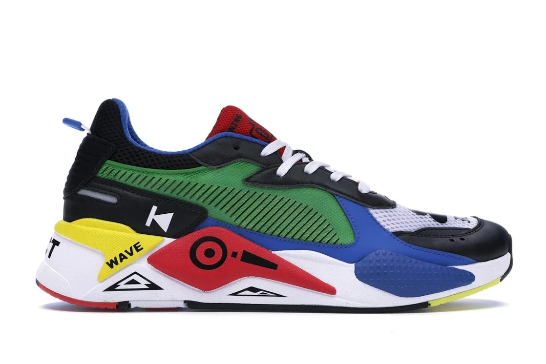 The Puma RS-X Alexander John The Mixtape is a multicolored running sneaker released by Puma as part of the Puma-RX series. It was a special edition release in collaboration with renowned artist Alexander John. The shoe’s upper is made from leather material with mesh underlays which keep the shoes lightweight and ventilated. It has a vibrant color palette featuring a range of bright colors including yellow, red, green, black, and white which immediately gives the shoe a vibrant aesthetic. Additionally, these Puma RS-X are inspired by old-school Side A-Side B mixtapes and even have a few graphics drawn on including ‘SIDE A’ and ‘SIDE B’ on the left and right shoes respectively. One thing that stands out on the Puma RS-X Alexander John The Mixtape is the chunky sole unit which uses cushioning technology to absorb any impact on your feet, keeping them comfortable for extended periods of time. The shoes were initially released at the retail price of $150 on 4th November 2018. - Style 928583-01 - Colorway Black/White - Retail Price 150 - Release Date 2018-11-04 - Featured false