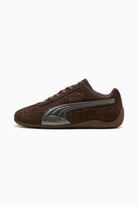 PRODUCT STORY Featuring a suede upper with a metallic Formstrip and bold PUMA Cat details. Rubber tooling on the heel provides grip, while foil-debossed accents deliver motorsport-inspired energy. Lace up and take on the streets with this low-profile legend. PUMA heritage, reimagined for the fast lane. DETAILS - Style: 408198_01 - Color: Chocolate-Gum - Width: Regular - Toe Type: Rounded - Fastener: Laces - Heel type: Flat - Pronation: Neutral MATERIAL INFORMATION - Sockliner: 100% Synthetic - Outsole: 100% Rubber - Upper: 97.82% Leather - cow, 2.18% Synthetic - Lining: 71.78% Synthetic, 28.22% Textile