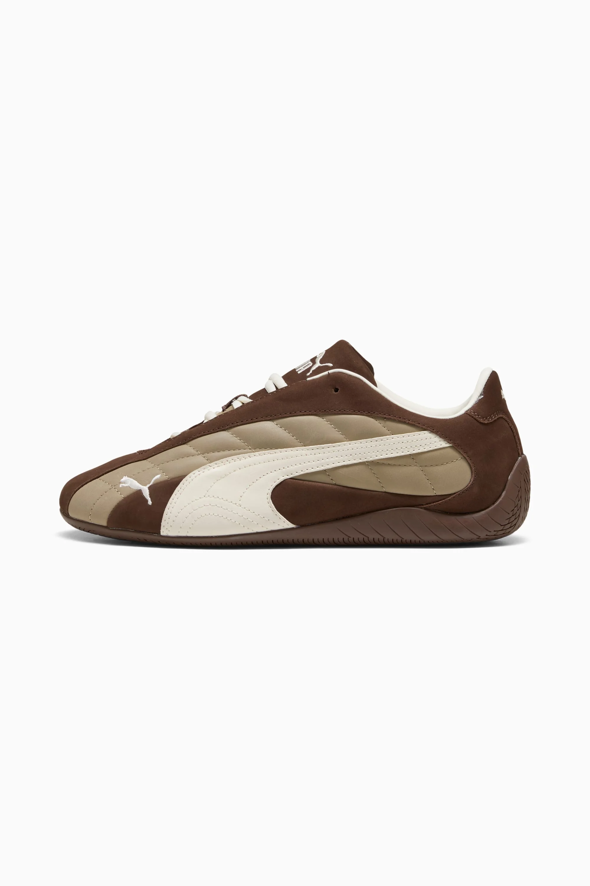 PRODUCT STORY The PUMA Speedcat has been a racing culture and street style icon for decades. Originally introduced as an ultra-slim driving shoe designed to cut milliseconds off lap times, it later evolved into a sleek streetwear essential spotted on the streets of global fashion capitals. Its story continues to evolve, embraced by trendsetters and trailblazers across generations. DETAILS - Style: 403429_01 - Color: Espresso Brown-Warm White - Width: Regular - Toe Type: Rounded - Fastener: Laces - Leather upper with nubuck overlays - Heel type: Flat - Lining: Textile - Outsole: Rubber MATERIAL INFORMATION - Sockliner: 100% Textile - Outsole: 100% Rubber - Upper: 97.66% Leather - cow, 2.34% Synthetic - Lining: 73.08% Textile, 26.92% Synthetic
