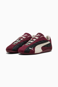 PRODUCT STORY The PUMA Speedcat has been a racing culture and street style icon for decades. Originally introduced as an ultra-slim driving shoe designed to cut milliseconds off lap times, it later evolved into a sleek streetwear essential spotted on the streets of global fashion capitals. Its story continues to evolve, embraced by trendsetters and trailblazers across generations. DETAILS - Style: 403429_02 - Color: Ruby Shimmer-Warm White - Width: Regular - Toe Type: Rounded - Fastener: Laces - Leather upper with nubuck overlays - Heel type: Flat - Lining: Textile - Outsole: Rubber MATERIAL INFORMATION - Sockliner: 100% Textile - Outsole: 100% Rubber - Upper: 97.66% Leather - cow, 2.34% Synthetic - Lining: 73.08% Textile, 26.92% Synthetic