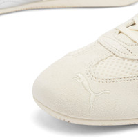 Puma’s revival of “motorcore” continues with a new, premium take on one of the shoes of the moment: the Speedcat. This time, airy mesh takes its spot beneath the creamy suede overlays for a sporty yet refined look. Loud branding takes a backseat with this edition favouring a simple metallic Formstrip and stripped back big cat embroidery on the toe. - Mesh & Suede Upper - Lace Up Closure - Embroidered Branding - Rubber Outsole