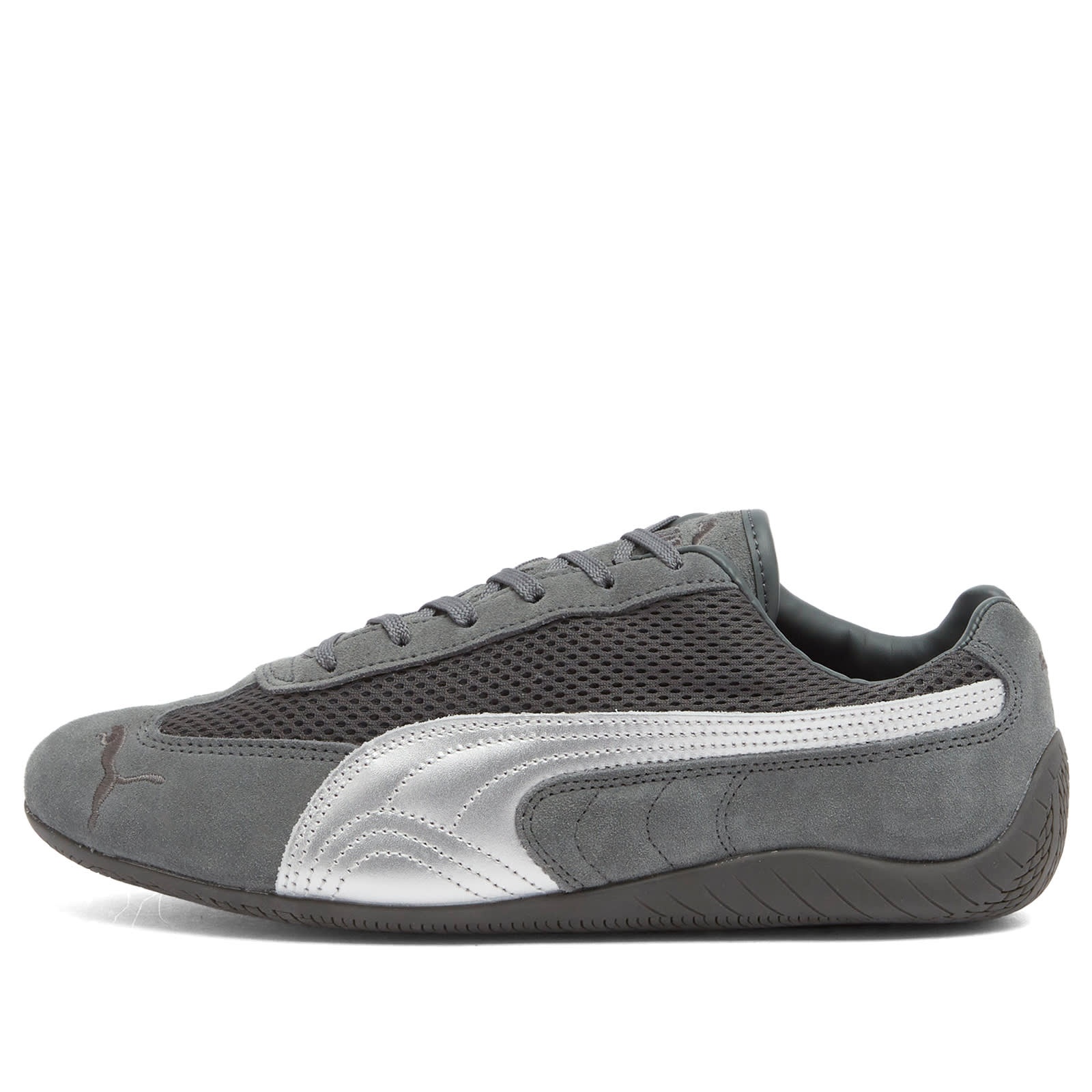 Puma’s revival of “motorcore” continues with a new, premium take on one of the shoes of the moment: the Speedcat. This time, airy mesh takes its spot beneath the creamy suede overlays for a sporty yet refined look. Loud branding takes a backseat with this edition favouring a simple metallic Formstrip and stripped back big cat embroidery on the toe. - Mesh & Suede Upper - Lace Up Closure - Embroidered Branding - Rubber Outsole