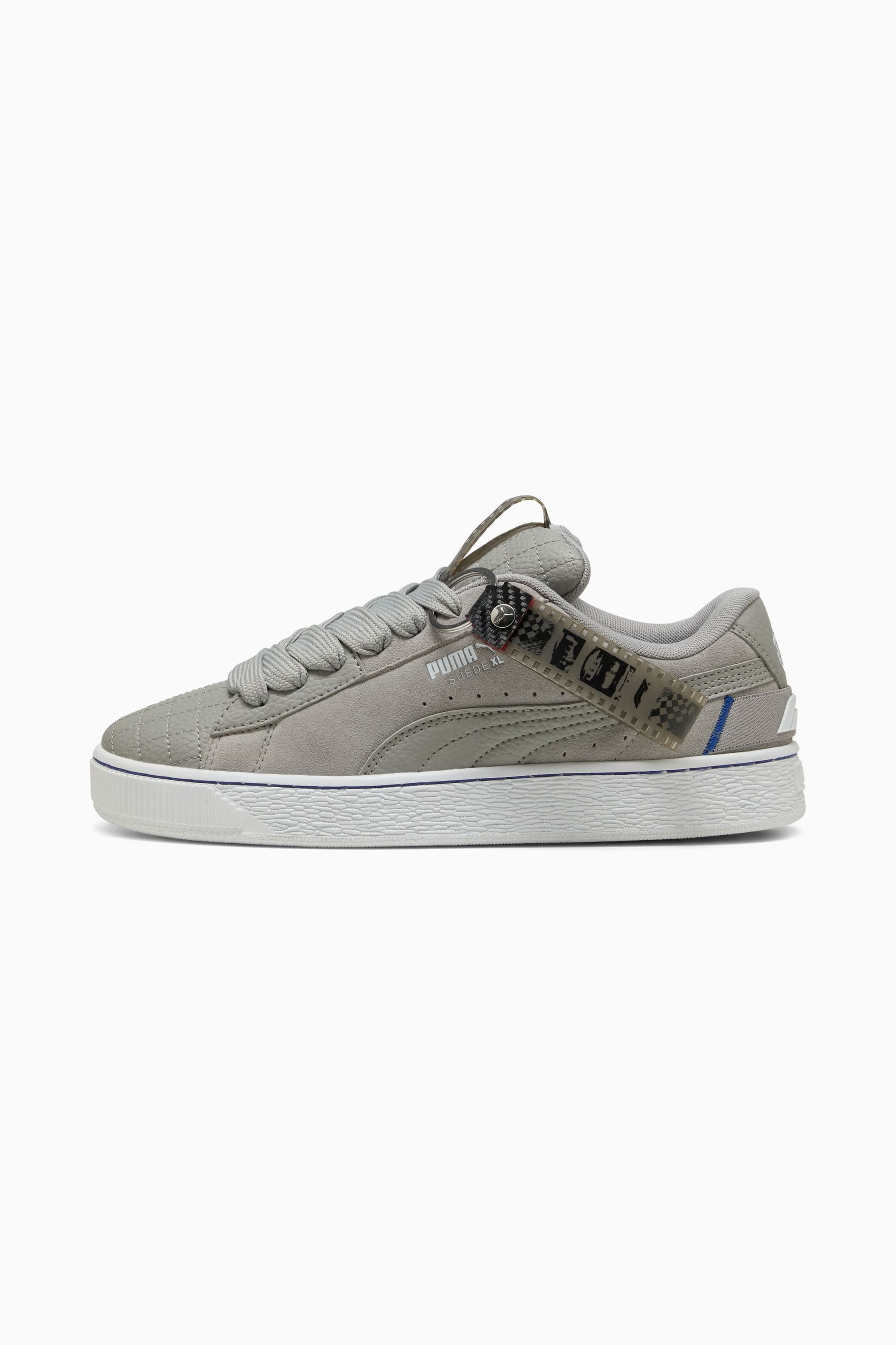 PRODUCT STORY Celebrate 75 years of PUMA with these Formula 1®-inspired kicks. Featuring a suede upper, leather Formstrip, and suede tongue with mesh binding, they fuse heritage with modern streetwear. Mesh lining and exaggerated padded collar ensure all-day comfort and style. FEATURES & BENEFITS - The upper of the shoes is made with at least 20% recycled materials DETAILS - Style: 308656_01 - Color: Matte Silver-Vivid Blue - Regular width - Full suede upper inspired by the iconic Formula 1® colors - Lace closure - Mesh lining - Leather Formstrip inspired by the iconic Formula 1® colors - Suede tongue with mesh binding MATERIAL INFORMATION - Sockliner: 100% Textile - Outsole: 100% Rubber - Upper: 62.17% Leather - cow, 29.62% Synthetic, 8.21% Textile - Lining: 100% Textile