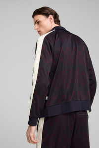 PRODUCT STORY A continuation of the smash hit "NeverWorn" collection, the NeverWorn V is a new iteration that aims to revolutionise our iconic T7 tracksuit. First created in 1967 and quickly becoming as popular on city streets as it was on training grounds, we're celebrating the T7's history with an all-over pattern pulled from the archives, vibrant colours, and an oversized feel. FEATURES & BENEFITS - Made with at least 50% recycled materials DETAILS - Style: 631491_16 - Color: New Navy - Relaxed fit - Double face jacquard fabric - Standard jacket length - Stand up, ribbed collar - 2-way metal full-zip closure - Long sleeves with ribbed cuffs and hem - Signature T7 stripes along the sleeves - Side zip pockets MATERIAL INFORMATION - Inserts: 59% polyester, 41% cotton - Shell: 100% polyester - Pocket Bag: 100% cotton - Rib: 96% cotton, 4% elastane