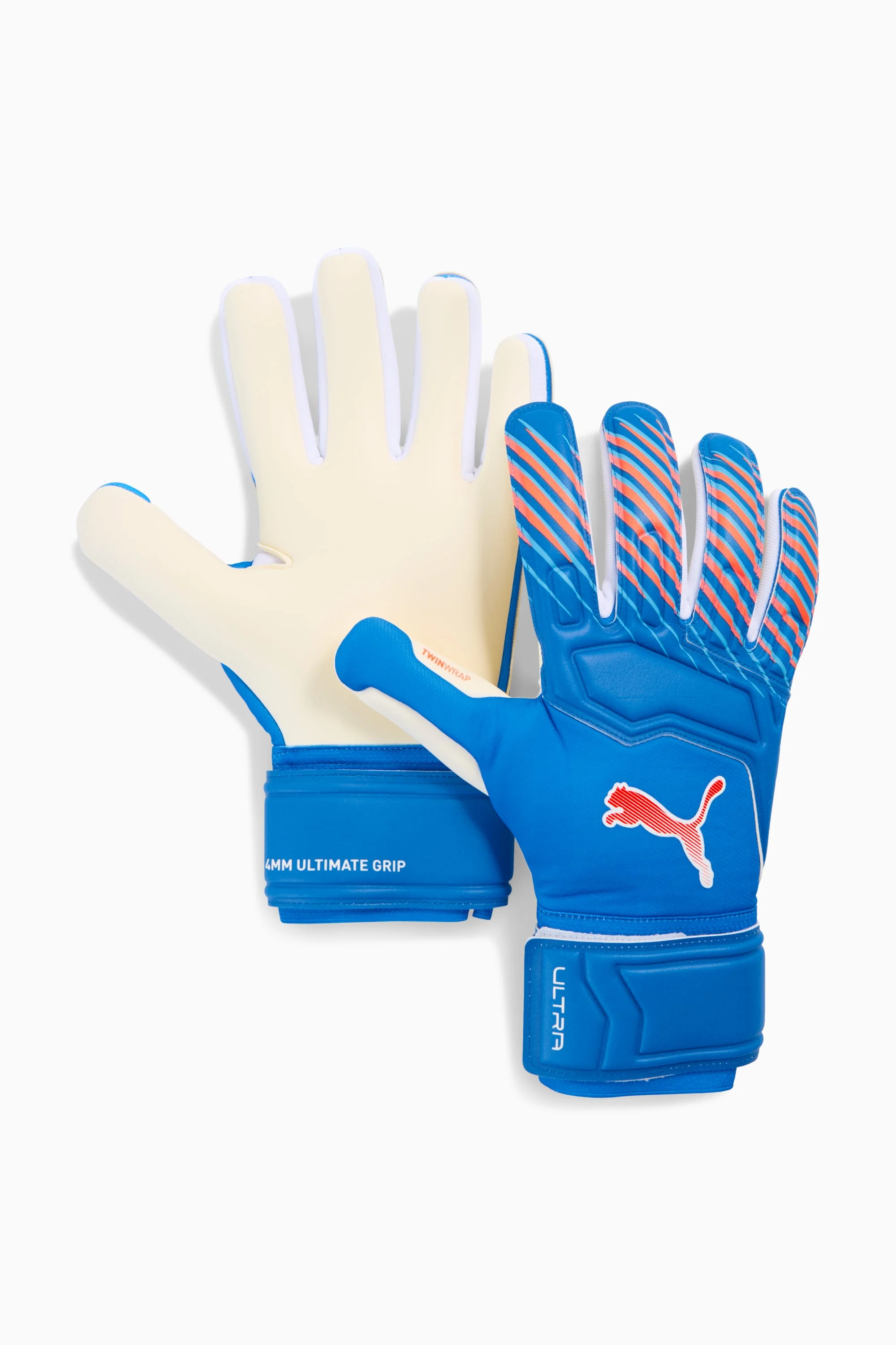 PRODUCT STORY Take control in all conditions with 4mm Ultimate Grip latex palms for pro-level performance. A negative cut ensures a close, precise fit, while the embossed latex backhand adds punch power. With an elastic wrist and full-length strap, PUMA delivers stability, control, and perfection. DETAILS - Style: 042082_01 - Color: Ultra Blue-Glowing Red - 4mm superior grip latex palm: Fantastic grip in both wet and dry conditions - Negative cut: Tight fit for perfect ball control - Textile body: Light textile material allows perfect agility and enhances wearing comfort - Twin wrap: Extended latex palm for maximum catching area and comfort - Embossed latex backhand: offers flexibility and enhance punching power - Elasticated wrist with full length latex strap provides wrist support and a secure closurex - PUMA branding details