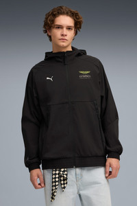 PRODUCT STORY The PUMA x ASTON MARTIN ARAMCO F1® TEAM collection redefines trackside style with a streetwear edge. Powered by speed and precision, this collection brings race-day tech into the rhythm of the streets. Streamlined design, bold attitude, and movement built into every detail — made to move fast, look sharp, and own the moment. FEATURES & BENEFITS - INSULATION: warmCELL thermal insulation traps heat close to the body to help keep you warm in cool conditions, while wind-resistant and water-repellent fabrics protect you from wind, light rain and snow DETAILS - Style: 634444_01 - Color: PUMA Black - Relaxed fit - Full zip - Long sleeves - Hooded - Zipped pockets on both sides - PUMA x ASTON MARTIN ARAMCO F1® TEAM branding details MATERIAL INFORMATION - Upper Pocket Bag: 100% polyester - Trimming: 58% nylon, 36% polyester, 6% elastane - Shell: 94% nylon, 6% elastane - Lower Pocket Bag: 94% nylon, 6% elastane