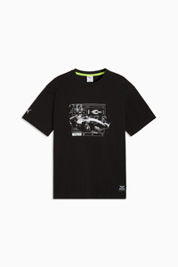 PRODUCT STORY The PUMA x ASTON MARTIN ARAMCO F1® TEAM collection redefines trackside style. Powered by speed and precision, this collection brings race-day tech into everyday motion. Streamlined design and bold attitude built into every detail — made to move fast, look sharp, and own the moment. FEATURES & BENEFITS - Made with at least 20% recycled cotton. DETAILS - Style: 635387_01 - Color: PUMA Black - Fit: Relaxed - Main material type: Single jersey - Neck: Crew neck - Short sleeves - Length: Regular - Car graphic - Co-branding details MATERIAL INFORMATION - Shell: 100% cotton - Rib: 71% cotton, 29% polyester