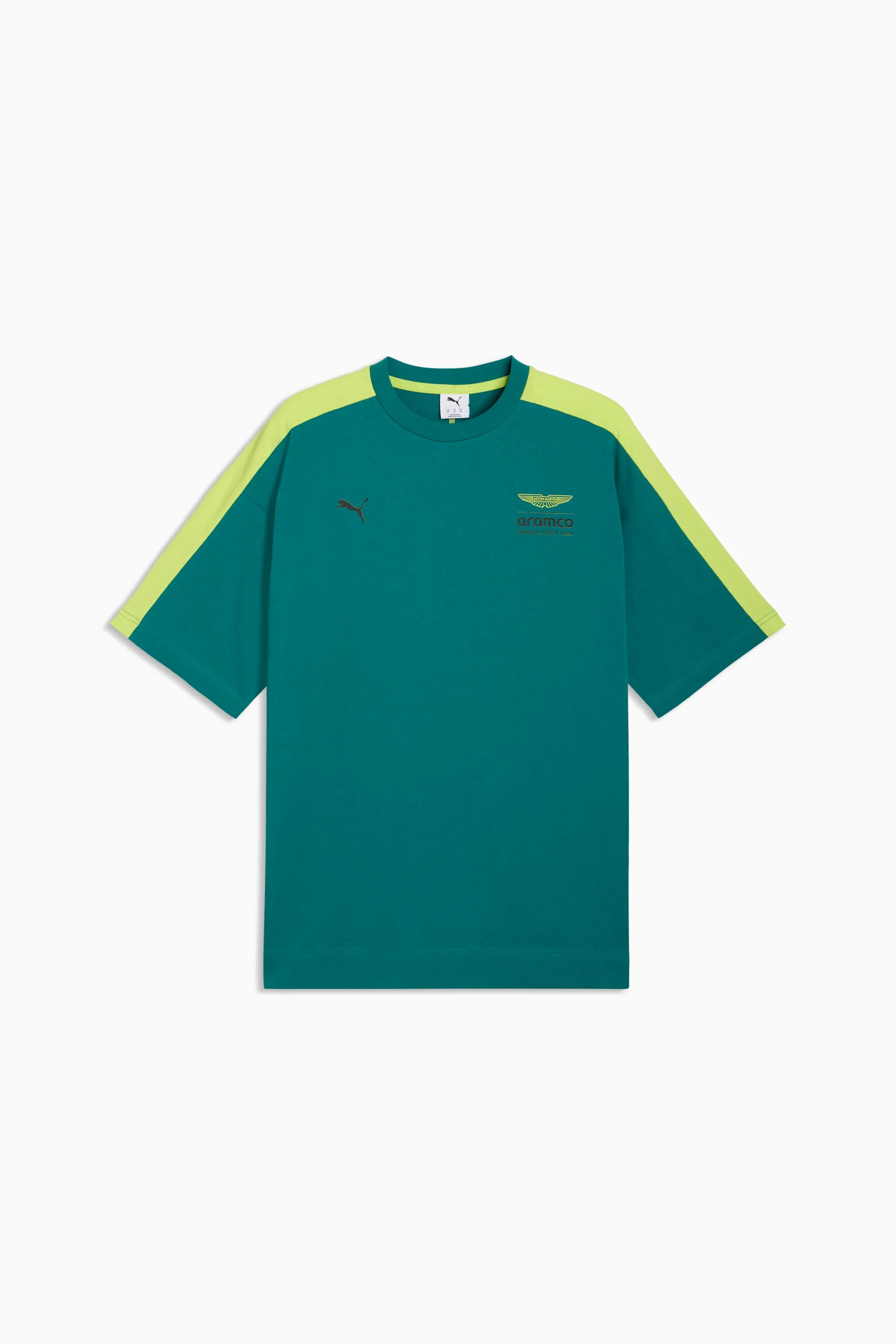 PRODUCT STORY The PUMA x ASTON MARTIN ARAMCO F1® TEAM collection redefines trackside style. Powered by speed and precision, this collection brings race-day tech into everyday motion. Streamlined design and bold attitude built into every detail — made to move fast, look sharp, and own the moment. FEATURES & BENEFITS - Made with at least 20% recycled cotton. DETAILS - Style: 635379_04 - Color: Green Lux - Fit: Oversized - Main material type: Single jersey - Neck: Crew neck - Short sleeves - Length: Regular - PUMA x ASTON MARTIN ARAMCO F1® TEAM Branding details MATERIAL INFORMATION - Shell: 100% cotton - Rib: 71% cotton, 29% polyester