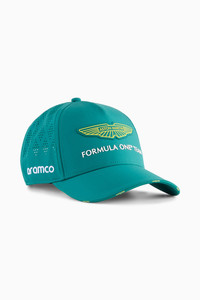 PRODUCT STORY Paddock precision, fan edition. The PUMA x ASTON MARTIN ARAMCO F1® TEAM Replica Collection has arrived. Featuring official team tees, baseball caps, and more, this lineup delivers the authentic look seen on race weekends. Inspired by the paddock, built for fans who want to rep the team anywhere. FEATURES & BENEFITS - Made with 100% recycled material excluding trims & decorations DETAILS - Style: 026914_01 - Color: Green Lux - Baseball cap style - Fabric type: Polyester - Perforated pattern on side and back panels - Premium closure - Replica version of the cap worn by the AMF1® Team - PUMA and Aston Martin Aramco F1® Team branding details MATERIAL INFORMATION - Lining: 100% polyester - Shell: 100% polyester - Under Visor: 100% polyester