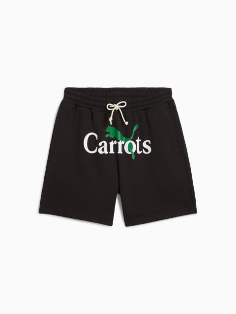 PRODUCT STORY We teamed up with streetwear brand Carrots to create this playful streetwear collection. Apparel, footwear, and accessories are given a fresh new look with retro Super PUMA graphics, bold striping, and fresh oranges and greens. Inspired by the idea of a scavenger hunt, each garment in the collection features the iconic Carrot logo hidden in a different place for a fun, interactive wearing experience. DETAILS - Style: 627447_86 - Color: Archive Green - Relaxed fit - 330 gsm, French Terry - Hidden random placed embroidered carrot badges throughout the garment - Mid-rise - External drawcords for easily adjustable fit - Side seam pockets and back welt pocket for safe storage solutions - Above-knee length MATERIAL INFORMATION - UPPER POCKET BAG: 100% cotton - SHELL: 100% cotton