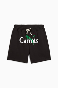 PRODUCT STORY We teamed up with streetwear brand Carrots to create this playful streetwear collection. Apparel, footwear, and accessories are given a fresh new look with retro Super PUMA graphics, bold striping, and fresh oranges and greens. Inspired by the idea of a scavenger hunt, each garment in the collection features the iconic Carrot logo hidden in a different place for a fun, interactive wearing experience. DETAILS - Style: 627447_01 - Color: PUMA Black - Relaxed fit - 330 gsm, French Terry - Hidden random placed embroidered carrot badges throughout the garment - Mid-rise - External drawcords for easily adjustable fit - Side seam pockets and back welt pocket for safe storage solutions - Above-knee length MATERIAL INFORMATION - UPPER POCKET BAG: 100% cotton - SHELL: 100% cotton