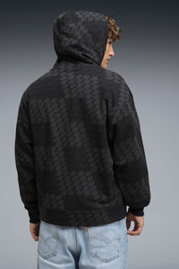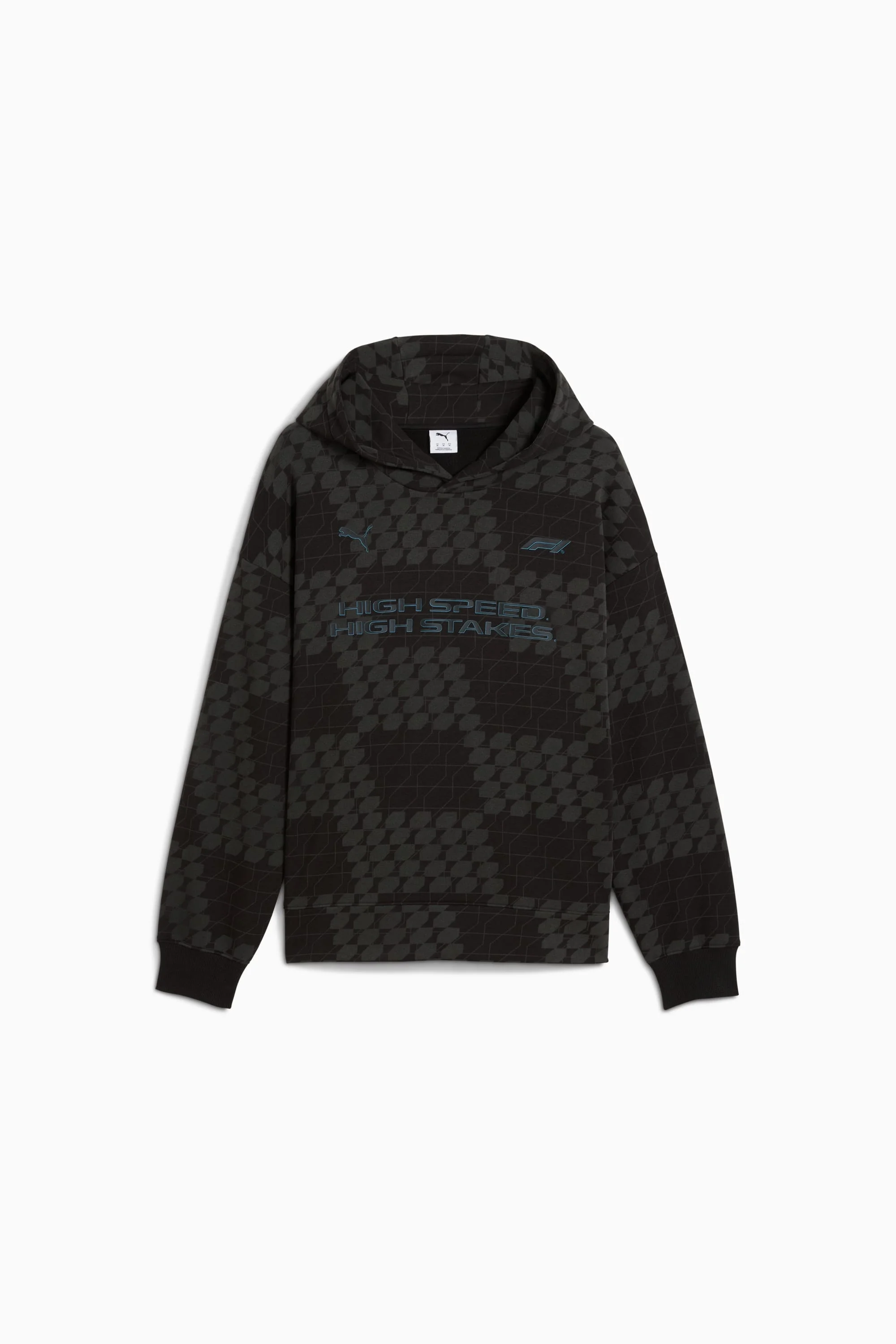 PRODUCT STORY This collection reimagines motorsport's most iconic symbol—the checkered flag—through modern design, street-ready details, and the unmistakable spirit of PUMA and FORMULA 1®. Race over? Never. FEATURES & BENEFITS - Made with at least 50% recycled materials. DETAILS - Style: 633089_01 - Color: PUMA Black - Fit: Relaxed - Main material type: French Terry - Long sleeves - Hooded - Length: Regular - Kangaroo pockets - Ribbed cuffs and hem - All-over graphic print - PUMA and F1® branding details MATERIAL INFORMATION - Shell: 68% cotton, 32% polyester - Rib: 97% cotton, 3% elastane