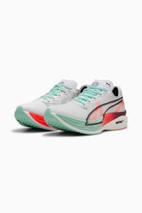 PRODUCT STORY Take your top speed to a level you never imagined with the Deviate NITRO™ Elite 3 HYROX. Worn by road racers and the world’s fastest HYROX athletes, it’s engineered and tested to be the ultimate race day shoe. It features NITROFOAM™ ELITE for best-in-class responsiveness and energy return, plus a stiff carbon fiber PWRPLATE for a powerfully responsive ride to make racing feel even more effortless. This pair features oversized PUMA x HYROX branding so you can rep the sport in style. FEATURES & BENEFITS - NITROFOAM™ ELITE: Innovative nitrogen-infused foam technology that uses the most cutting-edge materials for lightweight responsiveness and performance on race day - PWRPLATE: Full-length carbon fiber plate for powerful propulsion and elite efficiency - ULTRAWEAVE: Premium lightweight material engineered for breathability - PUMAGRIP: Outsole is made of durable rubber compound for multi-surface traction DETAILS - Style: 312291_01 - Color: Glowing Red-PUMA White - Fit: Regular - Toe type: Rounded - Fastener: Laces - Heel type: Flat - Heel-to-toe drop: 8.0mm - Stack height: 40mm / 32mm - Recommended for neutral pronators MATERIAL INFORMATION - Midsole: 100% Synthetic - Sockliner: 100% Textile - Outsole: 87% Rubber, 13% Synthetic - Upper: 84% Textile, 16% Synthetic - Lining: 100% Textile