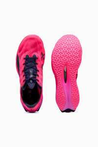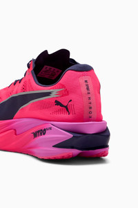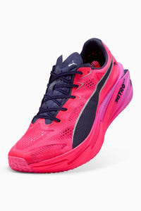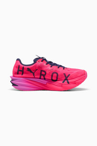 PRODUCT STORY The ultimate fitness race requires the ultimate gear. PUMA x HYROX is back for another round, with new designs specially curated for HYROX athletes. And making its debut: the Deviate Elite HYROX – the first shoe ever engineered specifically for the sport. We took one of our fastest racing shoes to date and reimagined it for HYROX, with intentional updates to power athletes through runs, reps, and everything in between. FEATURES & BENEFITS - NITROFOAM™ Elite: Premium performance foam technology that provides pinnacle responsiveness in an extremely lightweight package - PUMAGRIP: Durable performance rubber compound designed for all-surface traction - PWRPLATE: Carbon fibre plate engineered to maximize energy transfer and delvier a propulsive ride DETAILS - Style: 312959_01 - Color: Pure Pink-Electric Orchid-Deep Plum - Width: Regular - Toe type: Rounded - Closure: Laces - Heel type: Flat - Stack height: 40mm/32mm - Weight: 194g (size UK8) - Heel-to-toe drop: 8mm - Pronation: Neutral - Modified outsole provides optimal traction for sleds MATERIAL INFORMATION - Midsole: 100% Synthetic - Sockliner: 100% Textile - Outsole: 100% Rubber - Upper: 73% Textile, 27% Synthetic - Lining: 100% Textile