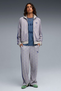 PRODUCT STORY This season's PUMA x KIDSUPER collaboration is where art meets sport. The collection features an eclectic mix of retro athletic silhouettes and modern art graphics. Keep an eye out for vintage goalie jerseys, a puffer jacket with detailed stitching, and jerseys decorated with watercolor prints. FEATURES & BENEFITS - Made with at least 90% recycled materials. DETAILS - Style: 632375_63 - Color: Gray Echo-AOP - Fit: Relaxed - Main Material: Double face jacquard - Length: Regular - Rise: Medium - Pockets: Side Pocket - Elasticated waistband with internal drawcords - PUMA x KIDSUPER co-branding details MATERIAL INFORMATION - Inserts: 59% polyester, 41% cotton - Shell: 100% polyester - Pocket Bag: 100% cotton