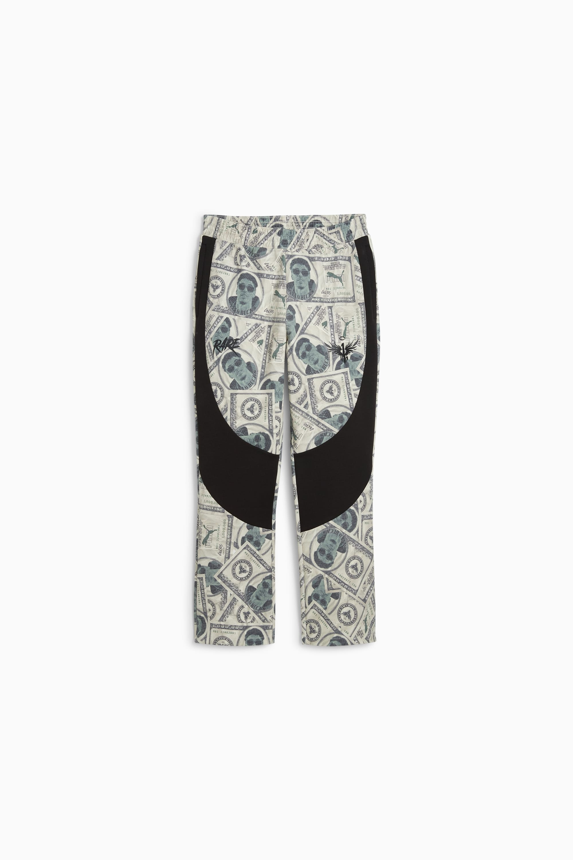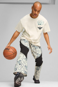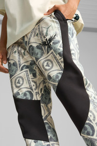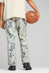 PRODUCT STORY Hit the court in style. These Melo Bucks Dime Pants are built for dominating the hardwood. An oversized fit with side pockets lets you drive the lane in comfort. LaMelo and PUMA branding turns heads from the first whistle to the final buzzer. Play like a pro, look like a pro. Victory never felt so good. FEATURES & BENEFITS - Made with at least 30% recycled materials - dryCELL: Performance technology designed to wick moisture from the body and keep you free of sweat during exercise DETAILS - Style: 627976_01 - Color: PUMA Black-AOP - Regular fit - 310 gsm - Flare leg design - Full zip closure - PUMA branding details MATERIAL INFORMATION - SHELL: 66% cotton, 34% polyester - POCKET BAG: 100% cotton