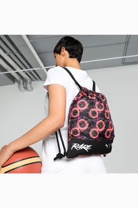 PRODUCT STORY Like everything Melo, we've gone a little wild with this gymsack. Stash your gear and go. It features chunky drawcords and an all-over-print that celebrates the basketball superstar. DETAILS - Style: 090386_02 - Color: PUMA Black-AOP - Chunky drawcords - Main compartment - Reflective M.E.L.O. logo - All-over-print - 35 x 42 cm, 5 L MATERIAL INFORMATION - SHELL: 100% polyester