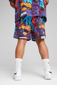 PRODUCT STORY Channel your inner LaMelo Ball with these dynamic basketball shorts. They feature the iconic "1 of 1" and "RARE" branding, hip pockets for convenience, and adjustable drawcords for a perfect fit. Crafted for those who embody LaMelo's unique spirit, these shorts are your new go-to for standout style, to be worn on and off the basketball court. FEATURES & BENEFITS - Made with 100% recycled material excluding trims & decorations DETAILS - Style: 630689_01 - Color: Blue Crystal-AOP - Oversized fit - Medium rise - Above knee length - Side pockets for convenient storage and comfort - Adjustable drawcords at the waistband - PUMA branding details MATERIAL INFORMATION - SHELL: 100% polyester - POCKET BAG: 100% polyester