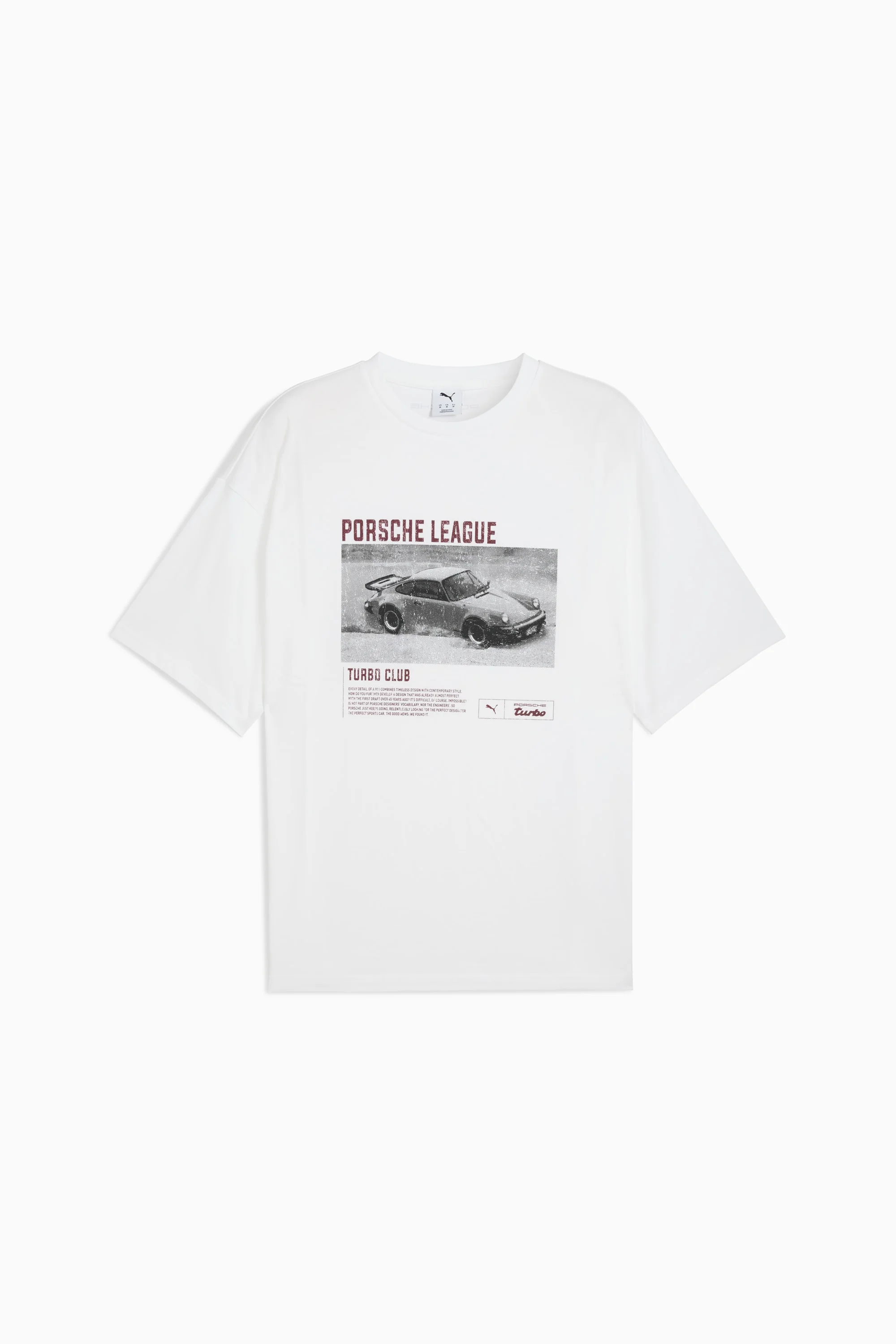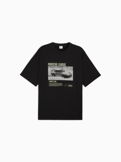 PRODUCT STORY For those who move with effortless confidence, the newest PUMA x PORSCHE LEGACY drop merges vintage sport aesthetics with a modern streetwear edge. Relaxed silhouettes, sun-faded neutrals, and worn-in textures create a laid-back, well-loved feel. Graphic tees, oversized outerwear, and washed leather offer a rugged yet refined look, perfect for effortless summer days and nights that never stop. FEATURES & BENEFITS - Made with at least 20% recycled cotton. DETAILS - Style: 632691_05 - Color: PUMA White - Oversized fit - Main material type: Single jersey - Short sleeves - Crew neck - Regular length - Porsche League Turbo Club graphic on the front MATERIAL INFORMATION - Shell: 100% cotton - Rib: 71% cotton, 29% polyester