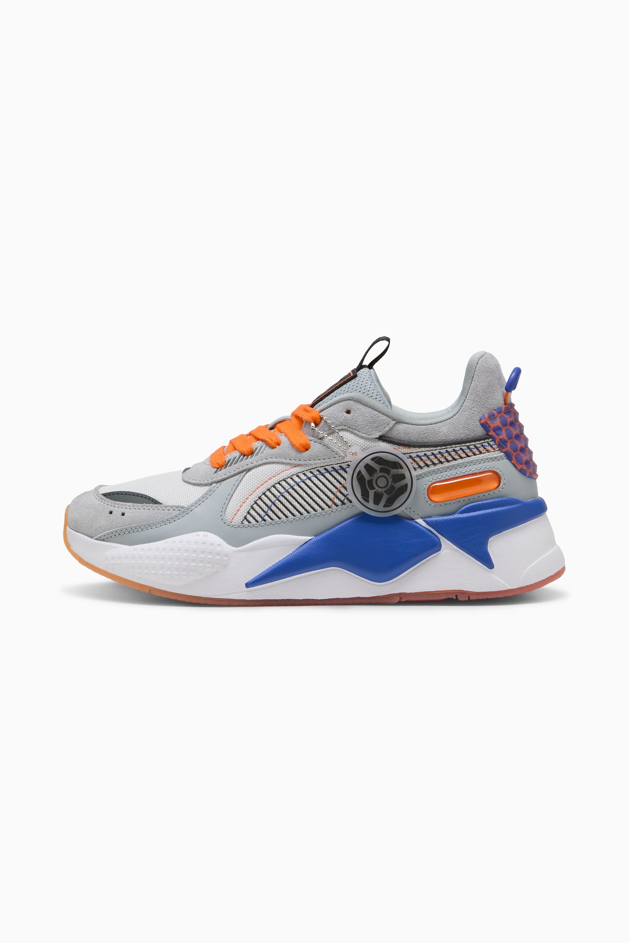 PRODUCT STORY Start your engines. PUMA x ROCKET LEAGUE is for true fans. A mix of esports fanwear and streetwear, this new collab is for every fan of the international hit game. This collab takes inspiration from in-game designs like the hexagonal arena and rank badges. Whether you're showing them off on stream or in the streets, this special version of our bold RS-X sneakers is for you. DETAILS - Style: 399432_01 - Color: Cool Mid Gray-Shadow Gray - Special envelope hidden inside every shoebox provides access to bonus in-game content - the PUMA World Goal Explosion! - Regular fit - Nylon upper - Synthetic and suede overlays - Lycra lining - Lace closure - Synthetic midsole with metallic painting detail - Rubber outsole - Gradient print - Metallic print PUMA Formstrip - PUMA x ROCKET LEAGUE branding details MATERIAL INFORMATION - Midsole: 100% Synthetic - Sockliner: 100% Synthetic - Outsole: 100% Rubber - Upper: 57% Leather - cow, 33% Textile, 10% Synthetic - Lining: 53% Textile, 47% Synthetic