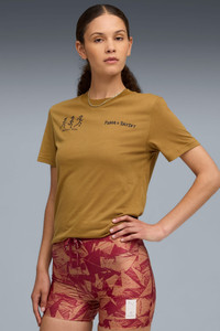 PRODUCT STORY Race day is about more than just the run – it’s a celebration of community, culture, and shared energy. Whether you’re chasing a PR or cheering from the sidelines, the latest PUMA x SAYSKY collection captures the spirit of the sport. Rooted in unity, the collection’s bold, sharp silhouettes capture the discipline and power of the pack - designed to make runners feel unstoppable, together. Collection pieces blend SAYSKY’s bold design language with PUMA’s cutting-edge running technology. The capsule also includes travel-ready essentials made for getting to and from the course. From race to recovery, it’s everything you need to tackle a race weekend in style. FEATURES & BENEFITS - Made with at least 50% recycled materials - MOISTURE MANAGEMENT: Technical dryCELL fabrics wick moisture away from the skin to help keep you dry and comfortable DETAILS - Style: 528147_69 - Color: Honey Butter - Regular fit - Crew Neck - Short sleeves - PUMA x SAYSKY graphic on the back - Co-branding details MATERIAL INFORMATION - Shell: 50% polyester, 25% viscose, 25% cotton