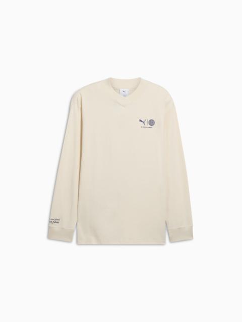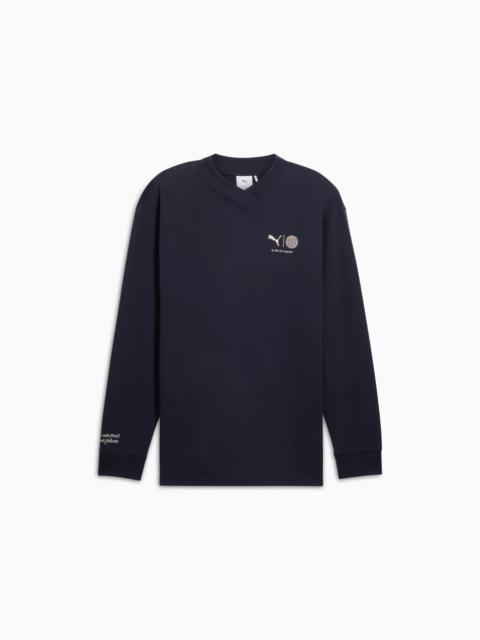 PRODUCT STORY Own the moment with dropped shoulders and ribbed details for a relaxed vibe. Bold embroidery and multicolor graphic prints deliver standout energy, while the collaboration logo adds a touch of exclusivity. Perfect for casual hangouts or creative endeavors, this tee keeps you looking sharp. Classic PUMA, always ahead. DETAILS - Style: 631261_16 - Color: New Navy - Fit: Regular - Main Material: Single jersey - Neck: Crew - Long sleeves MATERIAL INFORMATION - Shell: 100% cotton - Rib: 71% cotton, 29% polyester