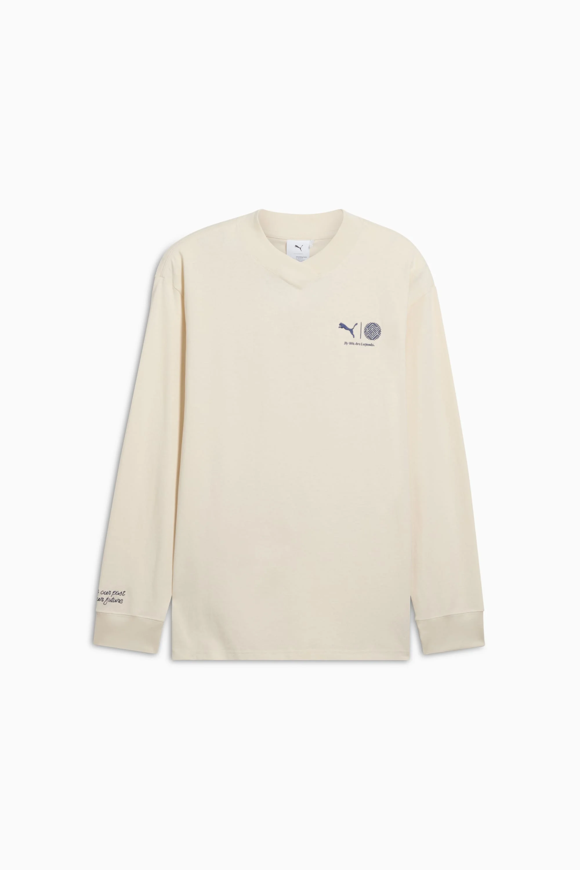PRODUCT STORY Own the moment with dropped shoulders and ribbed details for a relaxed vibe. Bold embroidery and multicolor graphic prints deliver standout energy, while the collaboration logo adds a touch of exclusivity. Perfect for casual hangouts or creative endeavors, this tee keeps you looking sharp. Classic PUMA, always ahead. DETAILS - Style: 631261_87 - Color: Alpine Snow - Fit: Regular - Main Material: Single jersey - Neck: Crew - Long sleeves MATERIAL INFORMATION - Shell: 100% cotton - Rib: 71% cotton, 29% polyester