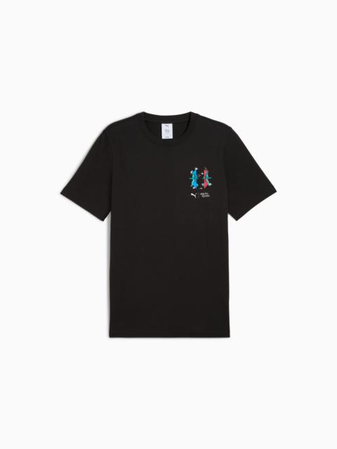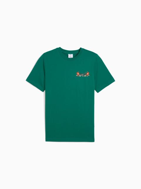 PRODUCT STORY Welcome back to the game, players. PUMA x SQUID GAME returns with a fresh release inspired by season 3 of the global hit series. The new collection takes the PUMA x SQUID GAME aesthetic to the next level, featuring designs inspired by the show's theme of what happens when the lights go out. Bold, dynamic allover prints and glow-in-the-dark accents define these pieces, with hidden details inspired by Jump Rope, Hide and Seek, and the final Squid Game. FEATURES & BENEFITS - Made with at least 20% recycled cotton. DETAILS - Style: 630706_74 - Color: Wild Green - Regular fit - Single jersey material - Short sleeves - Crew neck - Regular length - PUMA x SQUID GAME co-branding details - Print details inspired by the game MATERIAL INFORMATION - Shell: 100% cotton - Collar: 71% cotton, 29% polyester