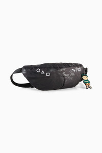 PRODUCT STORY Welcome back to the game, players. PUMA x SQUID GAME returns with a fresh release inspired by season 3 of the global hit series. The new collection takes the PUMA x SQUID GAME aesthetic to the next level, featuring designs inspired by the show's theme of what happens when the lights go out. Moody, dynamic allover prints and glow-in-the-dark accents define these pieces, with hidden details inspired by Jump Rope, Hide and Seek, and the final Squid Game. FEATURES & BENEFITS - Made with at least 30% recycled materials. DETAILS - Style: 091585_01 - Color: PUMA Black - Zipped main compartment. - Fleece lined back pocket. - Internal zip pocket. - Adjustable shoulder trap - PUMA x SQUID GAME logo with glow-in-the-dark design detail - SQUID GAME charm on main zip-pull - Volume: 2L - Dimensions: W35cm / D8.5cm / H14cm - 100% Polyester MATERIAL INFORMATION - Lining: 100% polyester - Shell: 100% polyester
