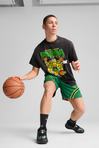 PRODUCT STORY Deep from within the New York City sewers, it’s everyone’s favorite pizza-loving, skateboarding, crime-fighting team: the Teenage Mutant Ninja Turtles. This collab sees many of Melo’s signature shoes taken over by the Turtles and some of their fiercest foes. The first limited-edition drop in this collection is an iridescent version of Melo’s debut PUMA Hoops sneaker. This MB.01 is covered in the shimmering pattern of the half-man, half-fly mad scientist, Baxter Stockman. The MB.01 Baxter Stockman is built for fast-paced play on and off the court, thanks to our signature NITROFOAM™ tech. FEATURES & BENEFITS - CMEVA: foam technology provides superior responsiveness and cushioning in a lightweight package - CUSHIONING: NITROFOAM™ throughout midsole for superior responsiveness and comfort while remaining lightweight—perfect for high-energy, explosive playstyles. - GRIP: Full coverage engineered nonslip rubber compound for enhanced durability and traction that’s ideal for quick cuts and spot up jumpers. - FIT: Disruptive upper construction made with breathable monomesh for a supportive yet ultra-lightweight feel. DETAILS - Style: 311580_01 - Color: PUMA Black-PUMA Red - Regular width - Engineered woven mesh upper materials - Lace closure - TPU heel counter adds lateral stability with iconic LaMelo branding details - Laces wrap through LaMelo's winged logo on tongue, featuring "RARE" and "1of1" callouts on pull-tab - PUMA branding details MATERIAL INFORMATION - Midsole: 100% Synthetic - Sockliner: 100% Textile - Outsole: 100% Rubber - Upper: 62% Textile, 38% Synthetic - Lining: 100% Textile