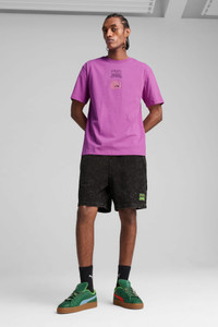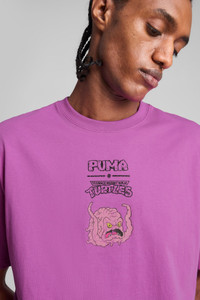 PRODUCT STORY Deep from within the New York City sewers, its everyone's favorite pizza-loving, skateboarding, crime-fighting team: the Teenage Mutant Ninja Turtles. We've teamed up with the heroes in a half-shell for a totally cool collab. This relaxed graphic tee is full-loaded with eye-popping graphics and hidden details for grown-up fans. FEATURES & BENEFITS - Made with at least 20% recycled cotton. DETAILS - Style: 630099_89 - Color: Wild Berry - Relaxed fit - Main material: Single jersey - Regular length - Crew neck - Short sleeves - PUMA branding details MATERIAL INFORMATION - SHELL: 100% cotton - RIB: 71% cotton, 29% polyester