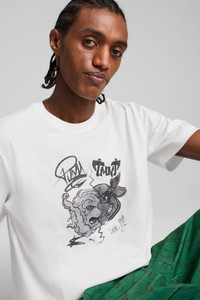 PRODUCT STORY Deep from within the New York City sewers, its everyone's favorite pizza-loving, skateboarding, crime-fighting team: the Teenage Mutant Ninja Turtles. We've teamed up with the heroes in a half-shell for a totally cool collab. This relaxed graphic tee is full-loaded with eye-popping graphics and hidden details for grown-up fans. FEATURES & BENEFITS - Made with at least 20% recycled cotton. DETAILS - Style: 630099_02 - Color: PUMA White - Relaxed fit - Main material: Single jersey - Regular length - Crew neck - Short sleeves - PUMA branding details MATERIAL INFORMATION - SHELL: 100% cotton - RIB: 71% cotton, 29% polyester