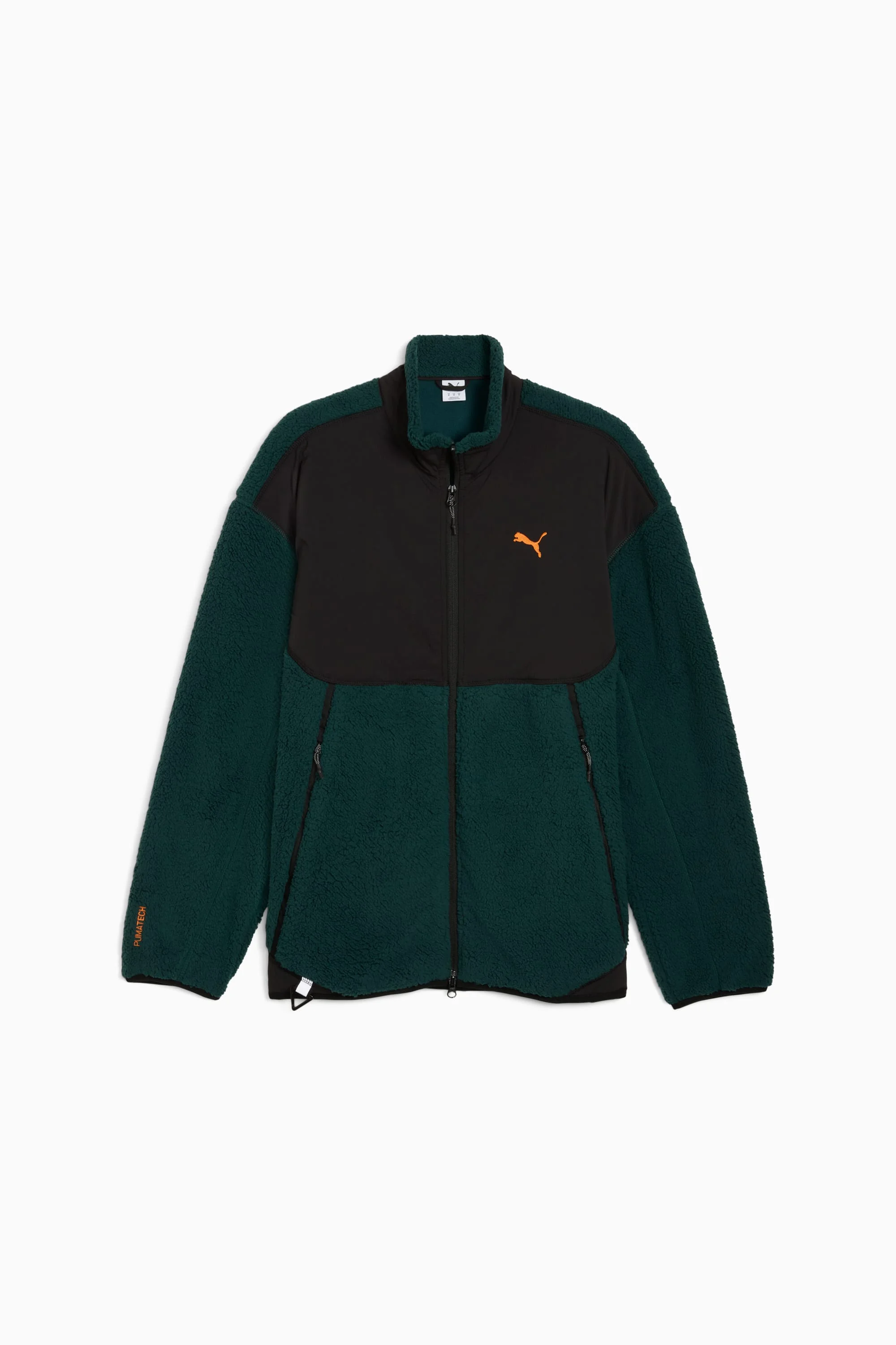 PRODUCT STORY The technical streetwear line PUMATECH is here to enhance your everyday style. The designs focus on visible functionality with a minimalist vibe, offering a relaxed yet sleek approach to techwear. PUMATECH is designed for anywhere and any occasion. FEATURES & BENEFITS - warmCELL: Breathable cold weather technology designed to trap heat close to your body and keep you warm during exercise - Made with at least 50% recycled materials. DETAILS - Style: 632104_75 - Color: Green Terrain-PUMA Black - Fit: Relaxed - Main material: Fleece - Neck: Stand up collar - Long sleeves - Fastener: Full zip - Length: Standard jacket - Pockets: Zipped side pockets - Outer with Sherpa material and fabric front panel MATERIAL INFORMATION - Inner Collar: 100% polyester - Upper Pocket Bag: 100% cotton - Shell: 100% polyester - Lower Pocket Bag: 100% polyester - Overlay: 94% nylon, 6% elastane