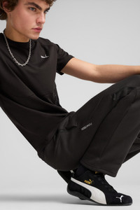 PRODUCT STORY Step up your game with PUMA's dynamic track pants. Featuring bold colour blocks and high-density prints, these pants are designed for those who dare to stand out. An elastic waistband with an internal drawcord ensures a perfect fit every time. FEATURES & BENEFITS - Made with at least 20% recycled materials - dryCELL: Performance technology designed to wick moisture from the body and keep you free of sweat during exercise DETAILS - Style: 629682_01 - Color: PUMA Black - Regular fit - Spacer fabric - Regular length - Medium rise - Side Pocket - PUMA branding details MATERIAL INFORMATION - Shell: 77% cotton, 23% polyester - Pocket Bag: 100% cotton