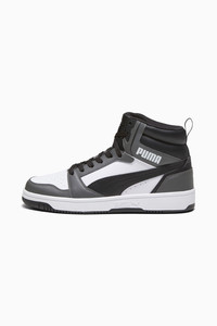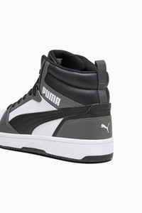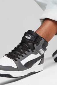 PRODUCT STORY Injecting PUMA DNA with a retro inspiration to this new basketball era, the Rebound sneakers don a wear-resistant upper, high-top construction and a soft sockliner for suprior cushioning that way you can attack your day-to-day in comfort and style. FEATURES & BENEFITS - The upper of this shoe is made with at least 20% recycled materials and the bottom is made with at least 10% recycled materials, as a step toward a better future - SOFTFOAM+: Step-in comfort sockliner designed to provide soft cushioning thanks to its extra thick heel DETAILS - Style: 392326_03 - Color: PUMA White-PUMA Black-Shadow Gray - Mid boot - Synthetic upper - SOFTFOAM+ sockliner - Rubber midsole - Rubber outsole