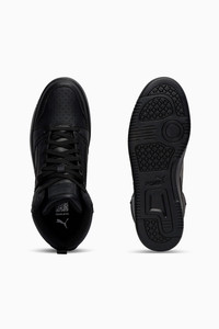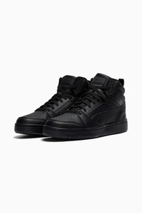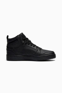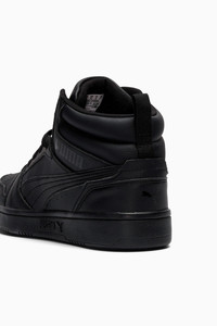 PRODUCT STORY Injecting PUMA DNA with a retro inspiration to this new basketball era, the Rebound sneakers don a wear-resistant upper, high-top construction and a soft sockliner for suprior cushioning that way you can attack your day-to-day in comfort and style. FEATURES & BENEFITS - The upper of this shoe is made with at least 20% recycled materials and the bottom is made with at least 10% recycled materials, as a step toward a better future - SOFTFOAM+: Step-in comfort sockliner designed to provide soft cushioning thanks to its extra thick heel DETAILS - Style: 392326_51 - Color: PUMA Black-PUMA Black-PUMA Black - Mid boot - Synthetic upper - SOFTFOAM+ sockliner - Rubber midsole - Rubber outsole